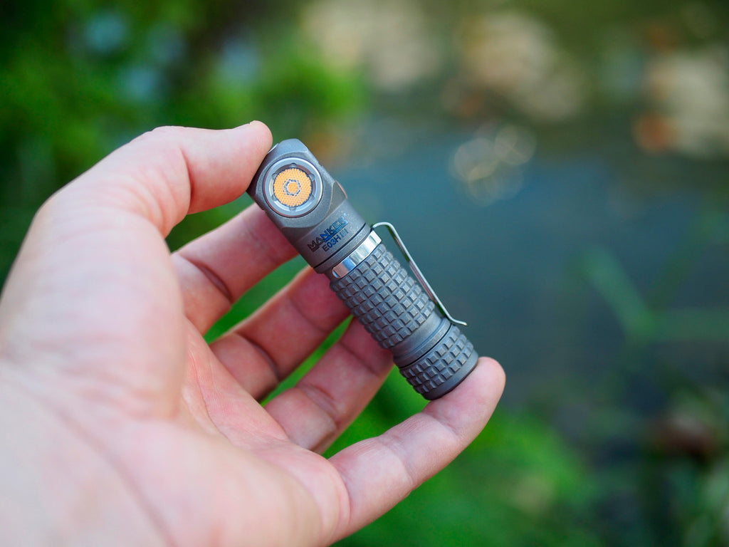 Mankerlight E03H III is the Brightest Headlamp and Premium Everyday Carry Angle Flashlight in 14500 / AA Class. TITANIUM VERSION.